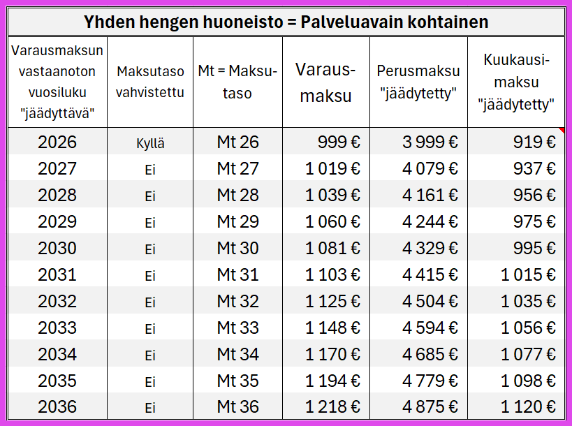 Tulevien vuosien varaus- perus- ja kuukausimaksujen kehityksestä ennakoivasti on vahvistamatonta informaatiota Mt 27-36.