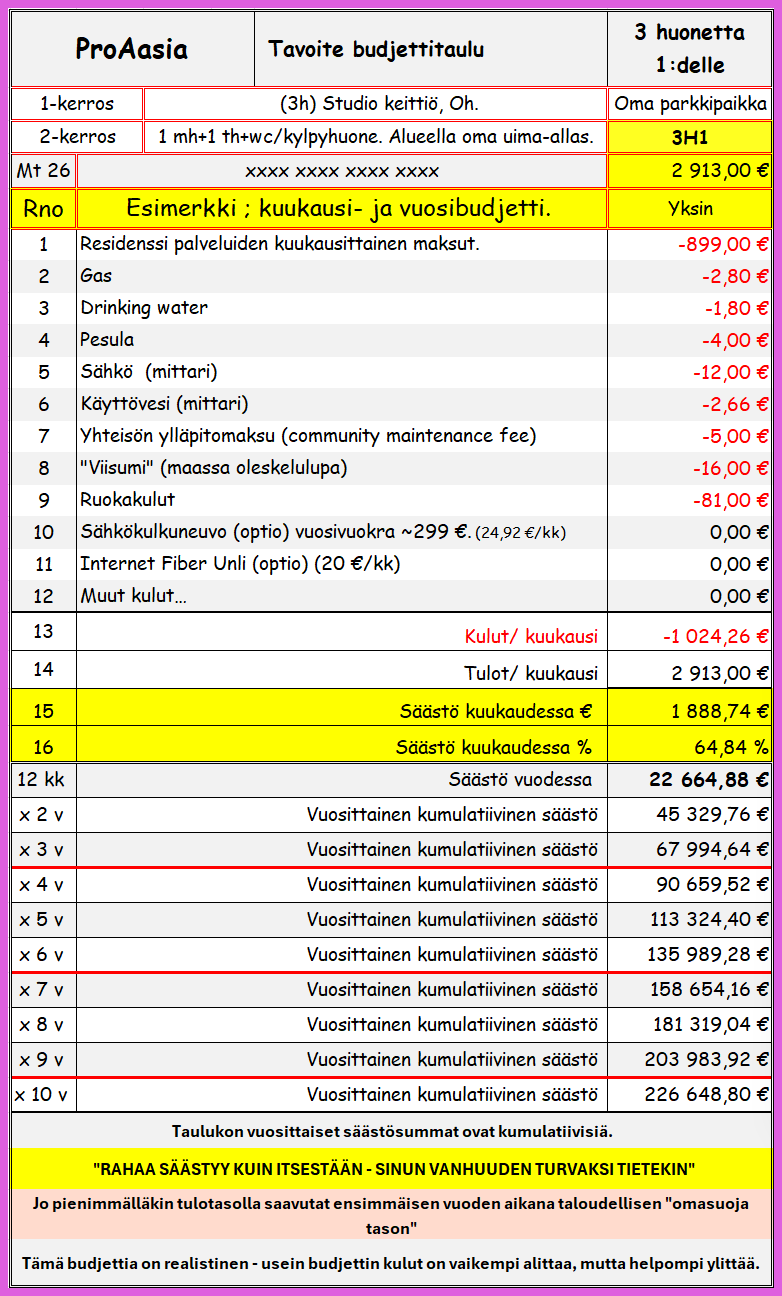 Henkilökohtainen 3H1 budjetti taulut