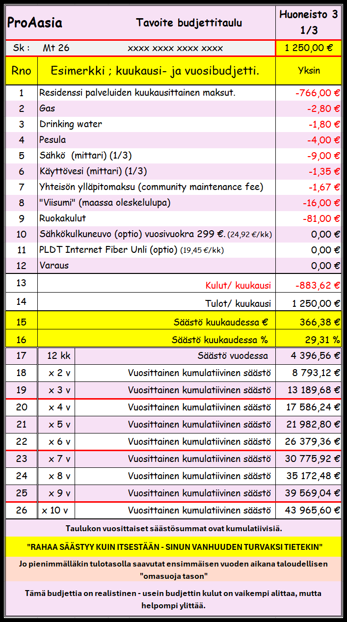 Budjetti taulu, 1/3