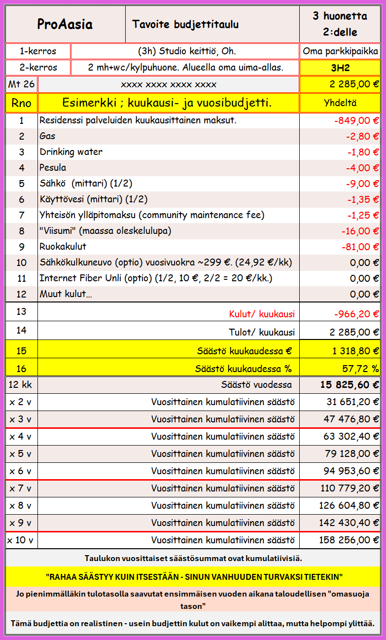 Henkilökohtaiset 3H2 budjetti taulut 2026