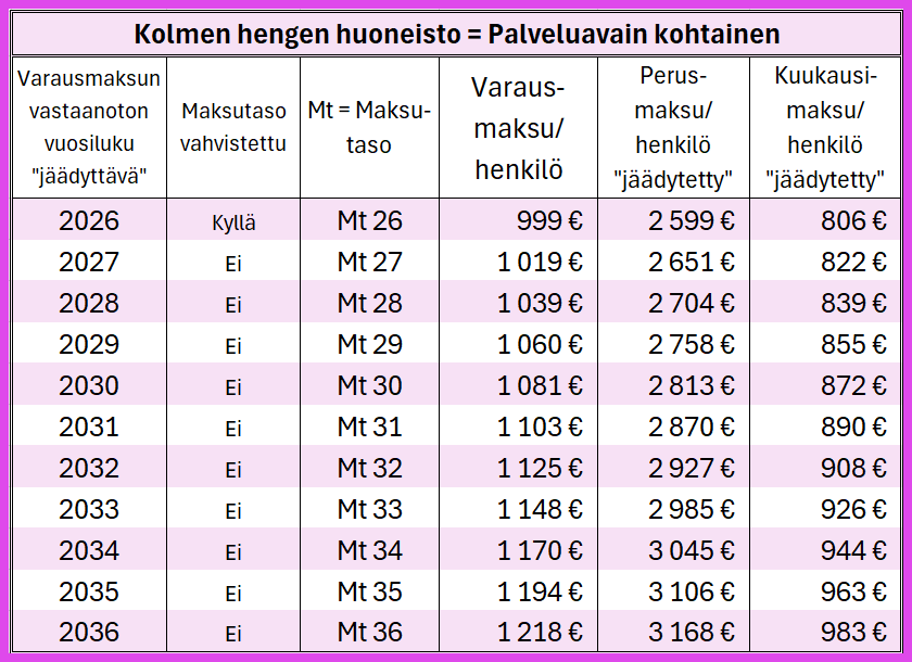 Tulevien vuosien varaus- perus- ja kuukausimaksujen kehityksestä ennakoivasti on vahvistamatonta informaatiota Mt 27-36.