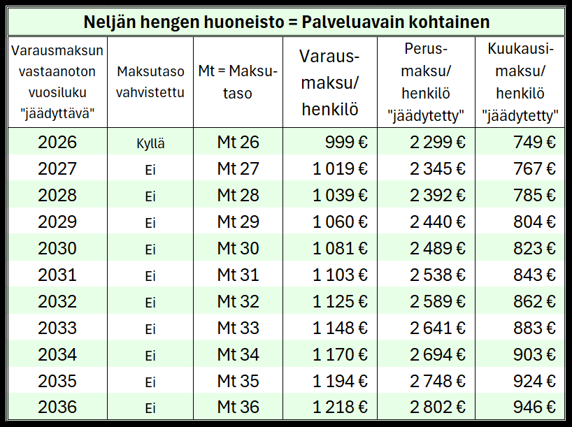 Tulevien vuosien varaus- perus- ja kuukausimaksujen kehityksestä ennakoivasti on vahvistamatonta informaatiota Mt 27-36.